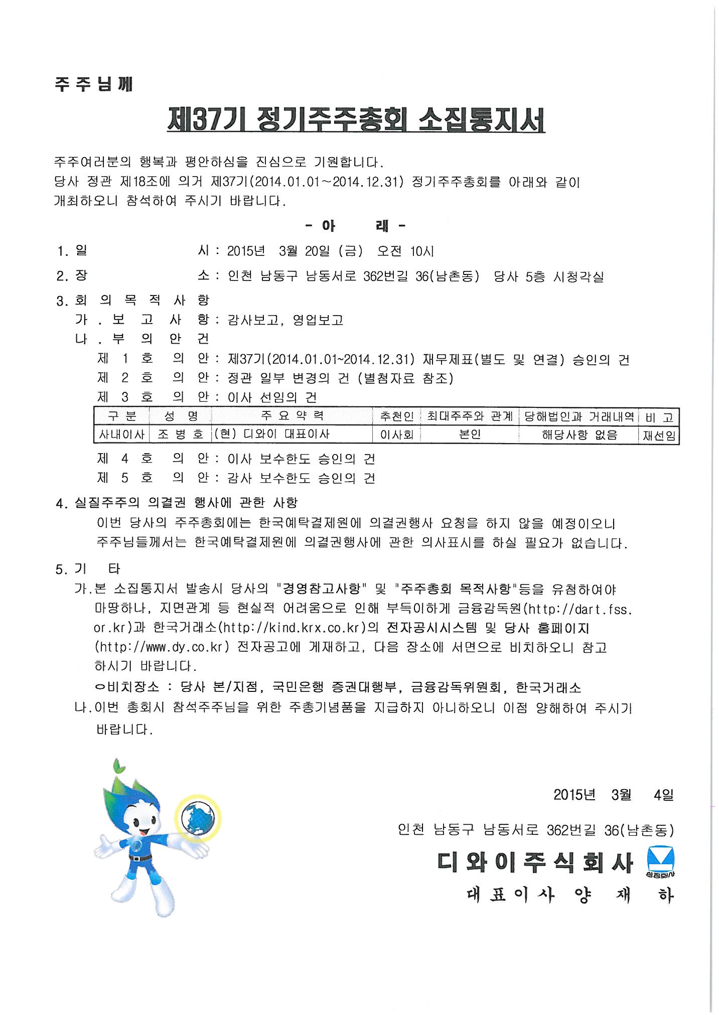 제37기 정기주주총회 소집공고