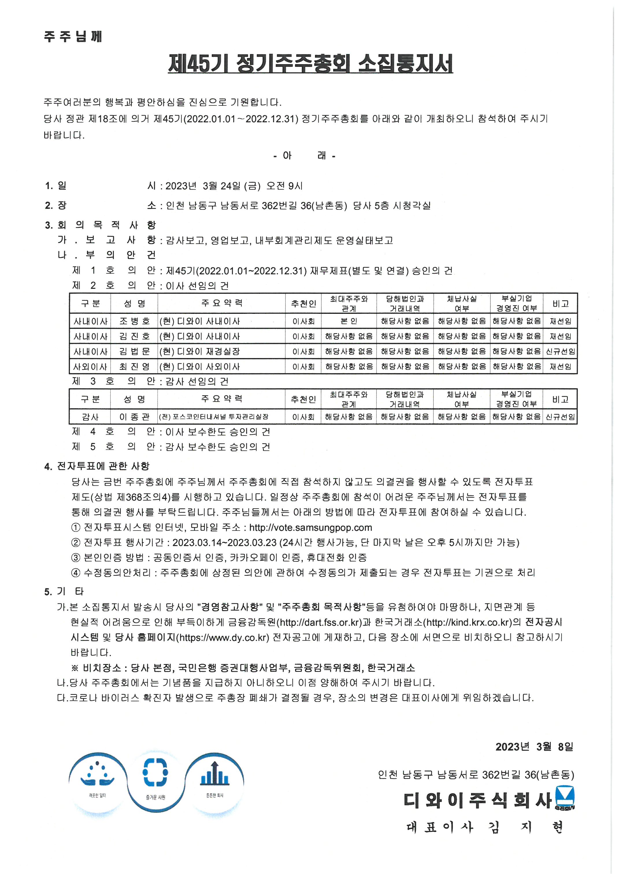 제45기 정기주주총회 소집공고