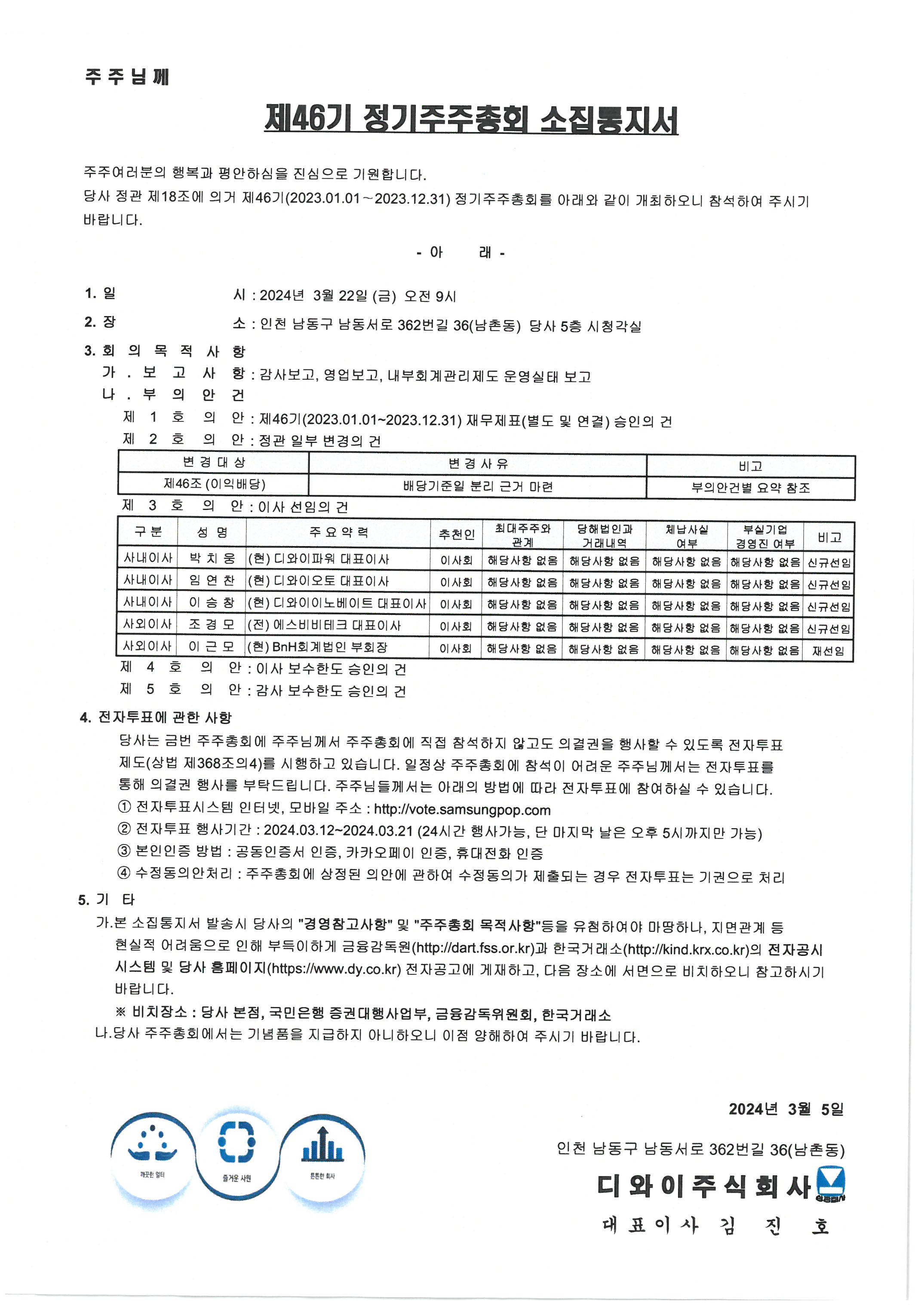 제46기 정기주주총회 소집공고