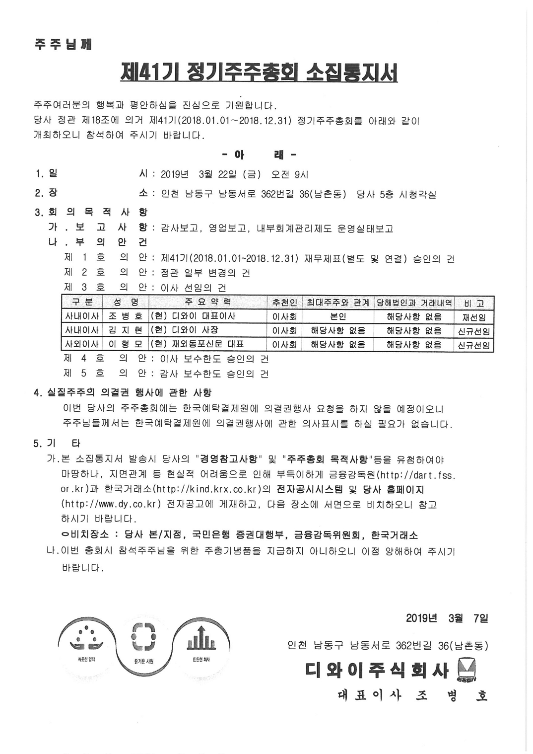 제41기 정기주주총회 소집공고