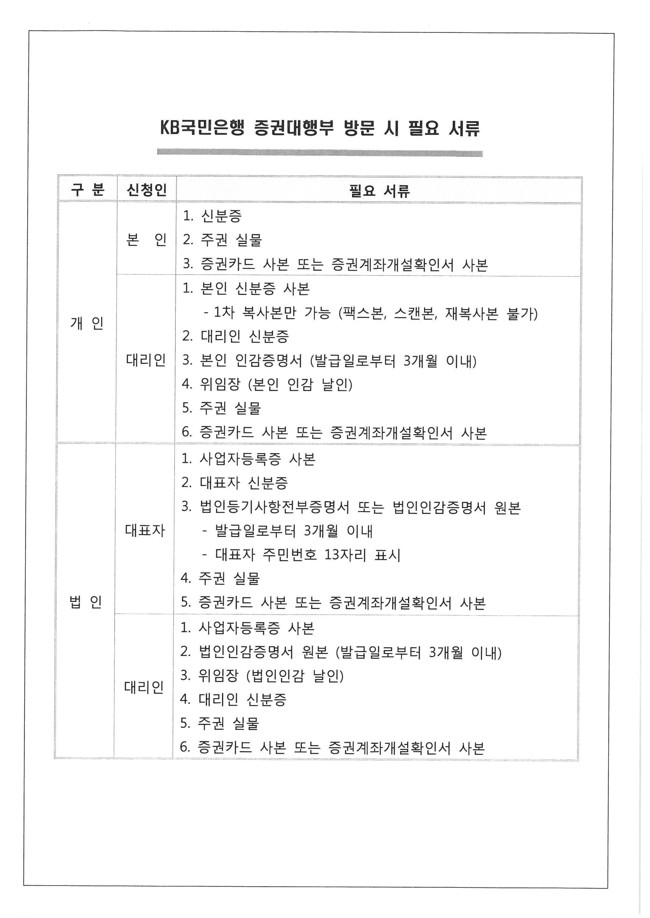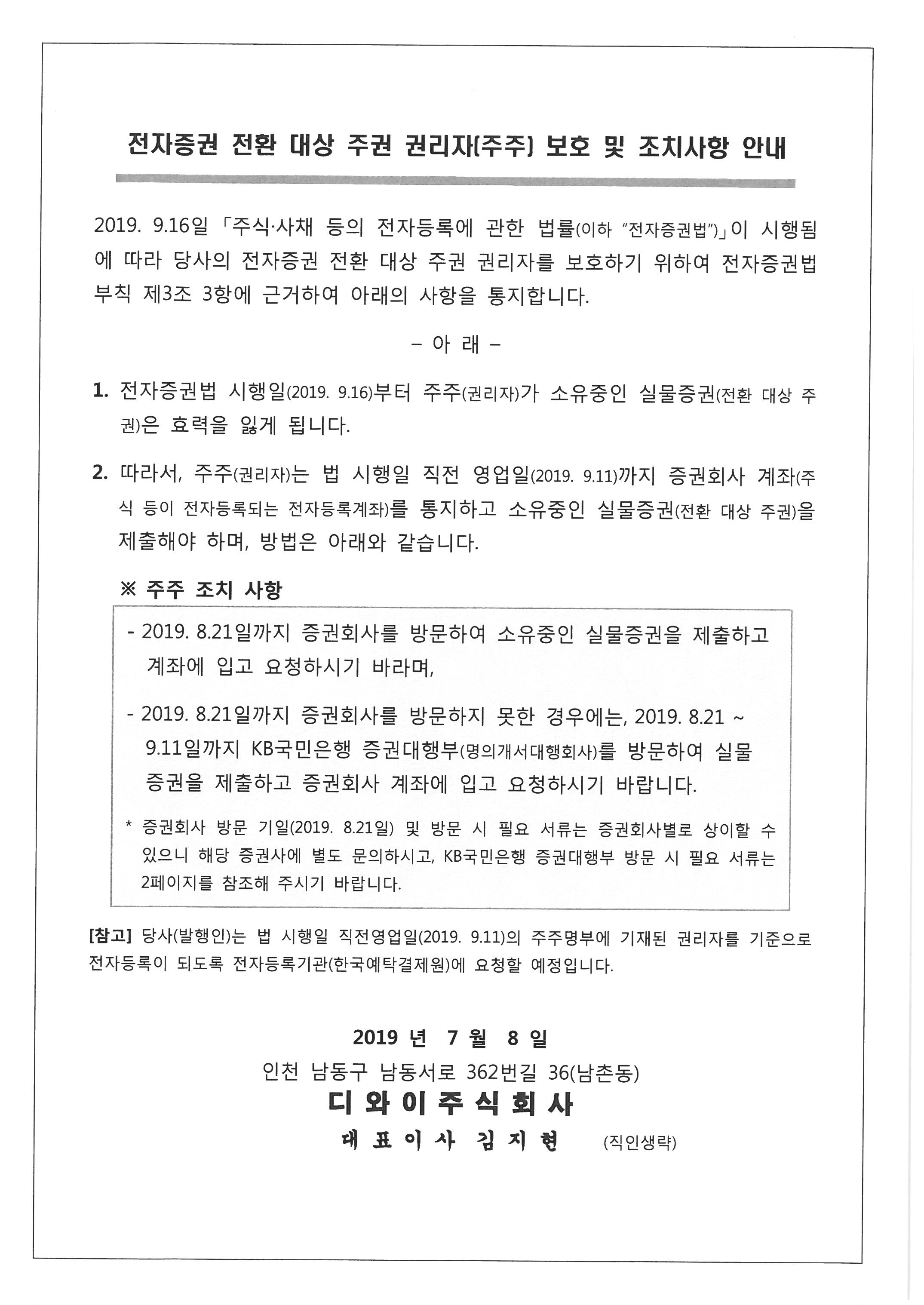전자증권 전환대상 주권 등의 권리자 보호 안내 공고